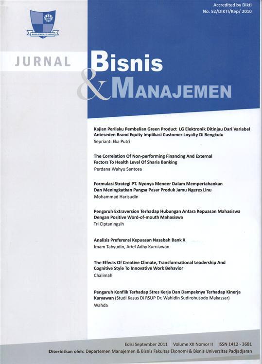 Jurnal Bisnis Dan Manajemen ; Volume XII Nomor II; September 2011